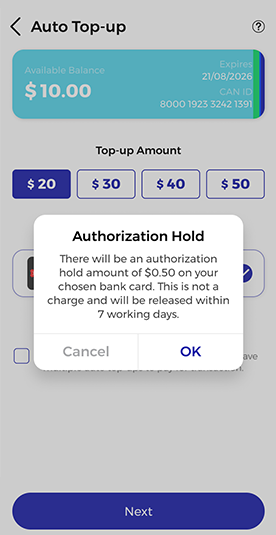 | Frequency | You can make one top-up per day for public transport use and also make one top-up per day for use at selected retail merchants. |